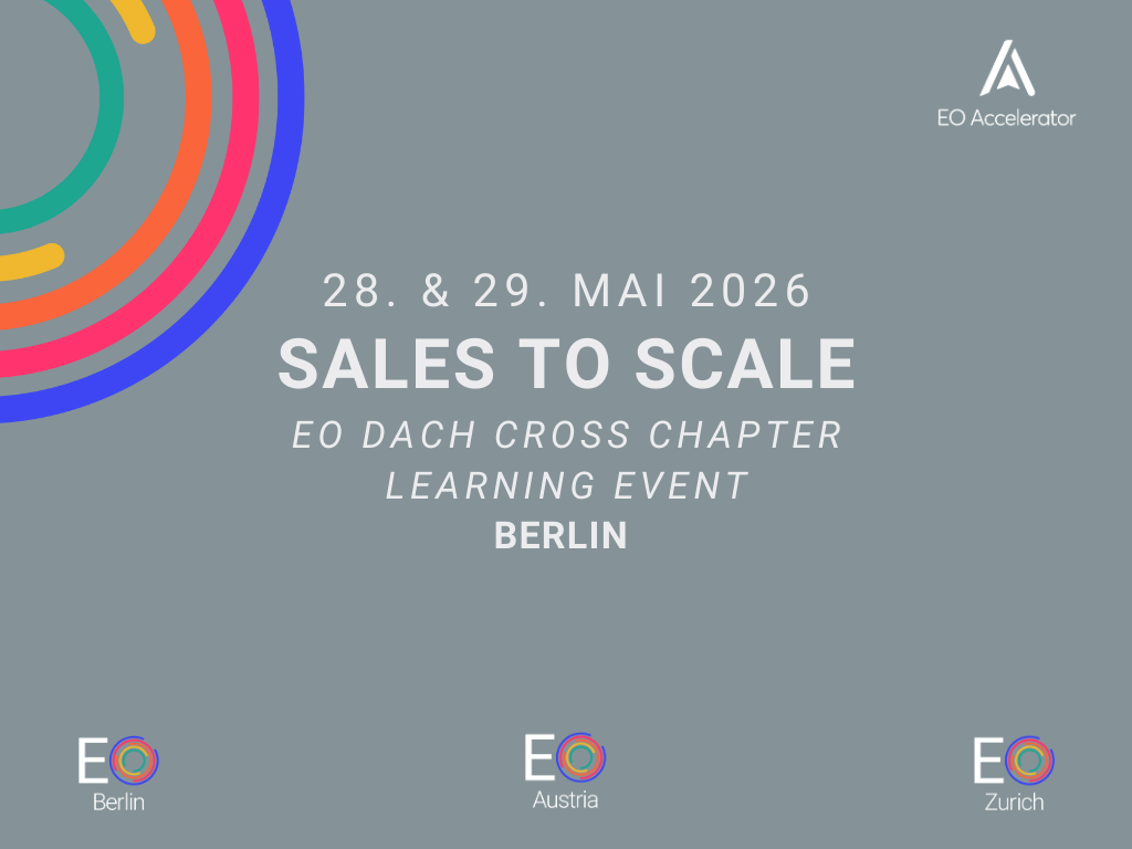 Sales ist der Herzschlag unternehmerischen Wachstums. Ob du als Accelerator auf dem Weg zu deiner ersten Million bist oder als Member den nächsten Skalierungsschritt planst – dieser exklusive Cross-Chapter Sales Learning Day, organisiert von EO Zürich, EO Berlin und EO Austria, gibt dir Strategien, Mindset und Tools an die Hand, um dein Business wirksam voranzubringen.